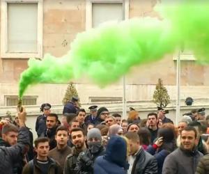 Kaq mjaftoi që të reagonin protestuesit, të cilët kanë bërë thirrje që personat që hedhin tymuese të largohen, pasi nuk janë studentë.