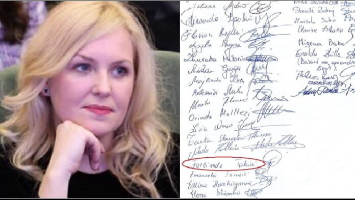 Lista e firmëtarëve është publikuar nga Lëvizja për Universitetin, ndërkohë që mes firmëtarëve, bie në sy, emri i gruas së ish-ministrit të Brendshëm, Saimir Tahiri, Fatlinda Tahirit. Fatlinda Tahiri është pedagoge në këtë fakultet.