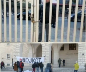 Studentët kanë shpalosur një banderolë me thirrjen për bojkot. Rojet e sigurisë e kanë hequr dhe kjo ka krijuar tensione. Në mëngjes studentët kanë bllokuar hyrjen. Aktualisht është një klasë që po zhvillon mësim, janë rreth 7 studentë. Pedagogët u kanë thënë që duhet të dorëzojnë disa projekte në të kundërt nuk do të lejohen të futen në provim.