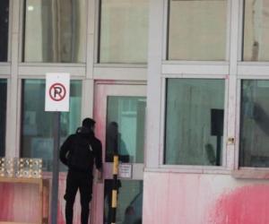 Anarkistët hodhën drejt mureve dhe dyerve shishe e tullumbace të mbushura me bojë të kuqe.