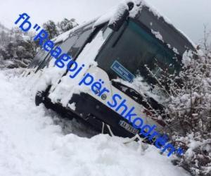 Autobusi me 20 persona ka dalë nga rruga për shkak të dëborës.