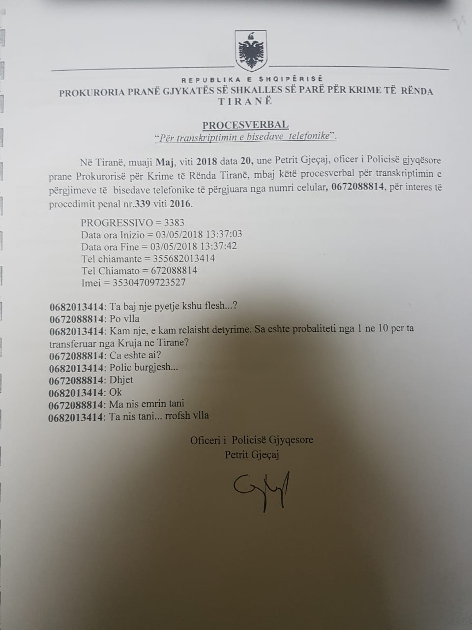 Blerina Gjylameti përmendet në një bisedë të Çukos me një person të tretë për ndërhyrjen në punësimin e një personi të lidhur me Partinë Socialiste, ndërsa Paulin Sterkaj ankohet për transferimin e një policeje me origjinë nga Tropoja, nga burgu 313 te “Ali Demi”.