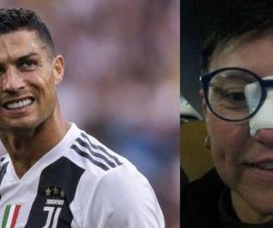 Ajo qendronte e ulur pas portës së Allianz Stadium kur papritur topi i gjuajtur nga Cristiano Ronaldo doli nga fusha dhe e goditi në fytyrë.
