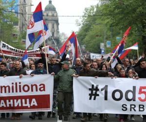 Disa dhjetra mijëra njerëz kanë protestuar dje në kryeqytetin e Serbisë në demonstratën më të madhe deri tani kundër regjimit të presidentit autokrat Aleksandar Vuçiç, në lëvizjen e nisur katër muaj më parë nga opozita. Demonstruesit u mblodhën fillimisht para kryeministrisë dhe më pas rrethuan parlamentin në qendër të Beogradit duke akuzuar Vuçiç për diktaturë dhe duke kërkuar më shumë demokraci, liri të medias dhe zgjedhje të lira. Liderët opozitarë thanë se autoritetet kishin ndaluar ardhjen e mbështetësve të tyre në Beograd nga qytete të tjera duke ndaluar linjat e autobusëve dhe me pengesa të tjera, por turmat gjithsesi arrinin në më shumë se 60 000 sipas organizatorëve. Policia tha se protestuesit arrinin në vetëm 10,000 vetë, që është më pak se protestat e rregullta të mbajtura çdo të shtunë që prej fundit të dhjetorit. Aleanca për Serbinë, si organizatore e protestës, ka ftuar qytetarët nga e gjithë Serbia të marrin pjesë në protestë. Ndërkohë ishin shtuar masat e sigurisë në ndërtesën e Kuvendit të Serbisë.
