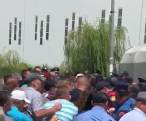 Policia ka hedhur gaz lotsjellës për të shpërndarë turmën.Dhjetëra qytetarë janë përplasur me policinë pasi nuk janë lejuar të futen në KZAZ.