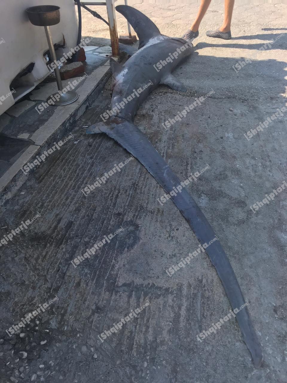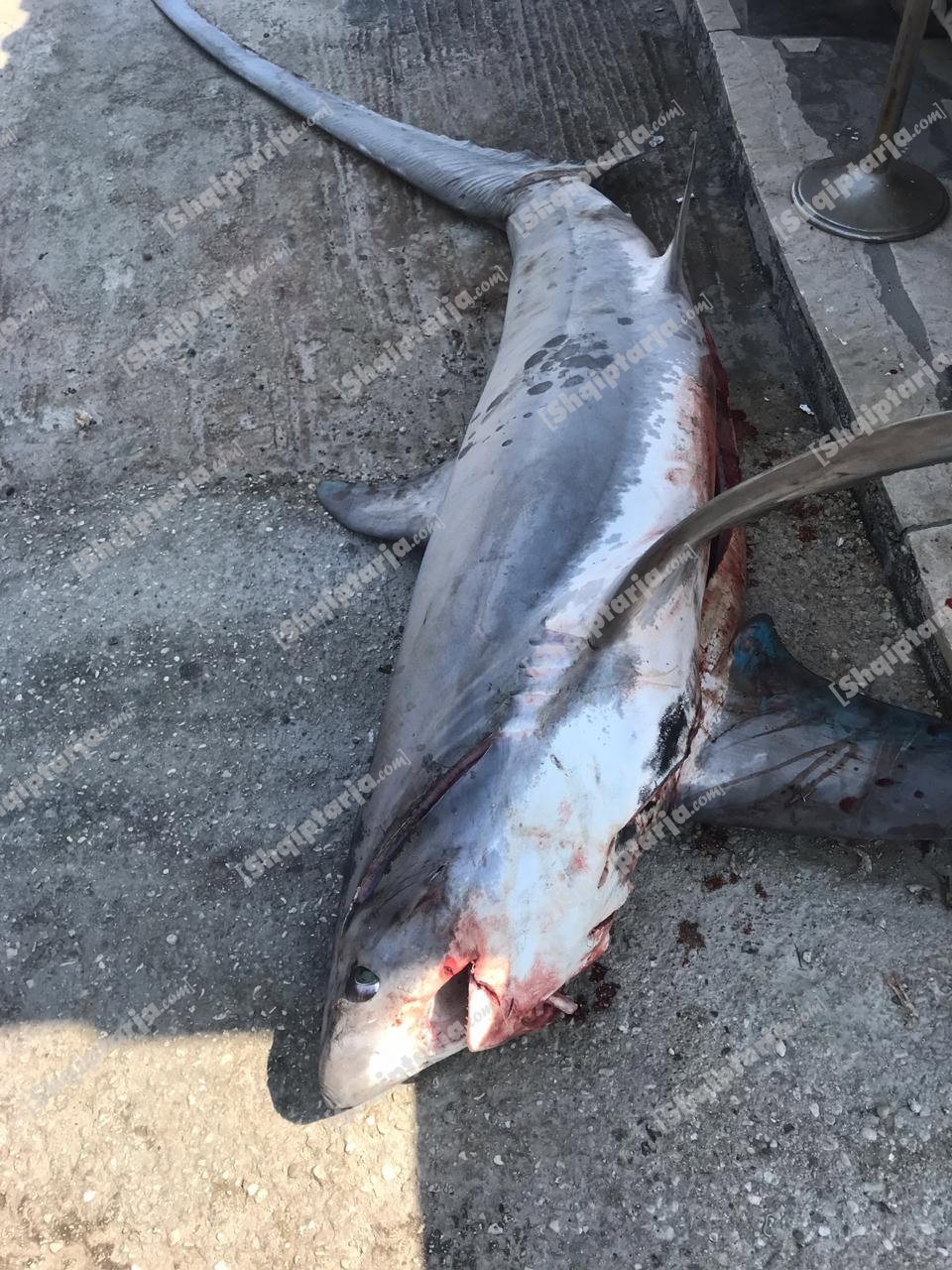 Një specie e rrallë është kapur në veri të ishullit të Sazanit, jashtë gjirit të Vlorës. Peshkaqeni dhelpër është kapur në det të hapur dhe ishte i gjatë rreth 3 metra e 30 cm e peshonte 200 kg.
