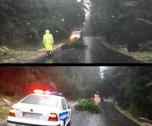 “Për shkak të stuhisë me shi dhe erë të fortë në Vlorë, ju bëjmë me dije se aksi rrugorë në Llogora është i pakalueshëm. Shërbimet e Policisë Rrugore janë prezent dhe në gatishmëri të plotë për t’u ardhur në ndihmë drejtuesve të mjeteve në rast nevoje. Lutemi që drejtuesit e mjeteve ta shmangin këtë aks nga të dy krahët, derisa të qetësohet situata dhe të bëhet pastrimi i rrugës nga pemët e thyera.