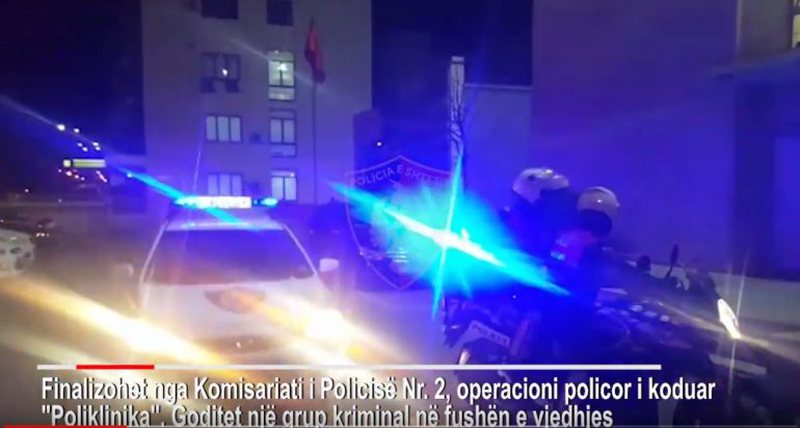 Mbi bazën e provave të siguruara, u organizua, zhvillua dhe finalizua operacioni policor “Poliklinika”, në kuadër të të cilit u bë arrestimi në flagrancë, për veprën penale “Vjedhja me pasoja të rënda”, kryer në bashkëpunim, i shtetasve: