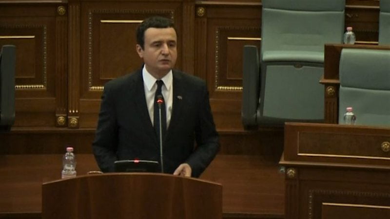 Në Kuvend, Albin Kurti tha se shkarkimi I tij vjen si pasojë e një marrëveshje të errët të gatuar nga Presidenti Hashim Thaci për shkëmbimin e territoreve të Kosovës me Serbinë.