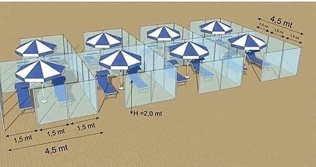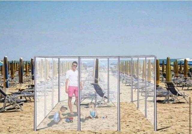 Sipas gazetës La Republika, një kompani nga Modena ka hedhur idenë e zhvillimit të sezonit verorë, duke projektuar rrethimin e shezloneve në plazh, apo restoranteve me xham pleksiglas. Siç shihet nga pamjet e projektuara nga firma italiane, qytetarët do të mund të shijojnë diellin dhe rërën, por të rrethuar me xhama mbrojtës nga personat e tjerë në plazh.