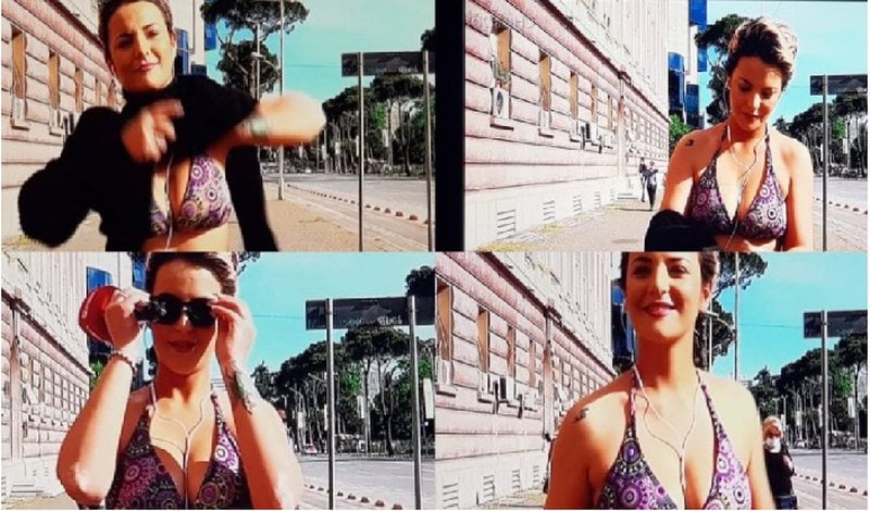 Vajza ka provokuar edhe sot ne mengjes pas reagimeve që solli shfaqja e saj në ekran një ditë më parë. Gazetarja edhe sot ka dalë në raportim me golf, por e ka hequr rrobën duke dalë sërish me bikini përballë kryeministrisë.