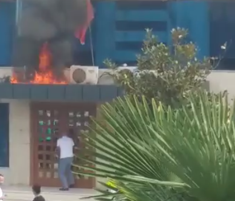 Nga pamjet e publikuara nga ish-kryebashkiaku Xhelal Mziu, shihet se ka marrë flakë pjesa ballore e bashkisë.https