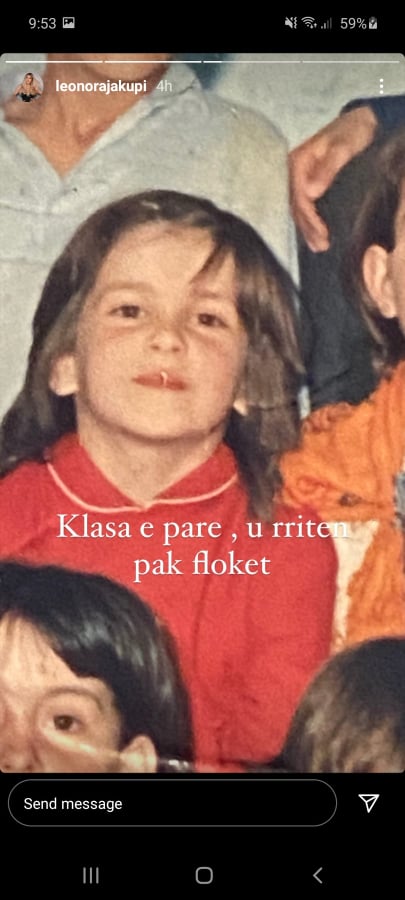 Këngëtarja ka postuar foto nga fëmijëria e saj kur ishte në klasë të parë dhe pothuajse nuk e njohim me flokë me baluke dhe të zeza.