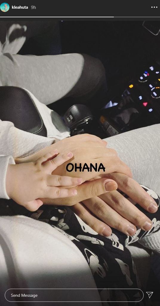 Ajo ka fotografuar duart e tyre të bashkuara, mbi të cilat qëndron dora e vogël e Kridit, ndërsa krahas postimit shkruan “Ohana”, që do të thotë “Familje”.