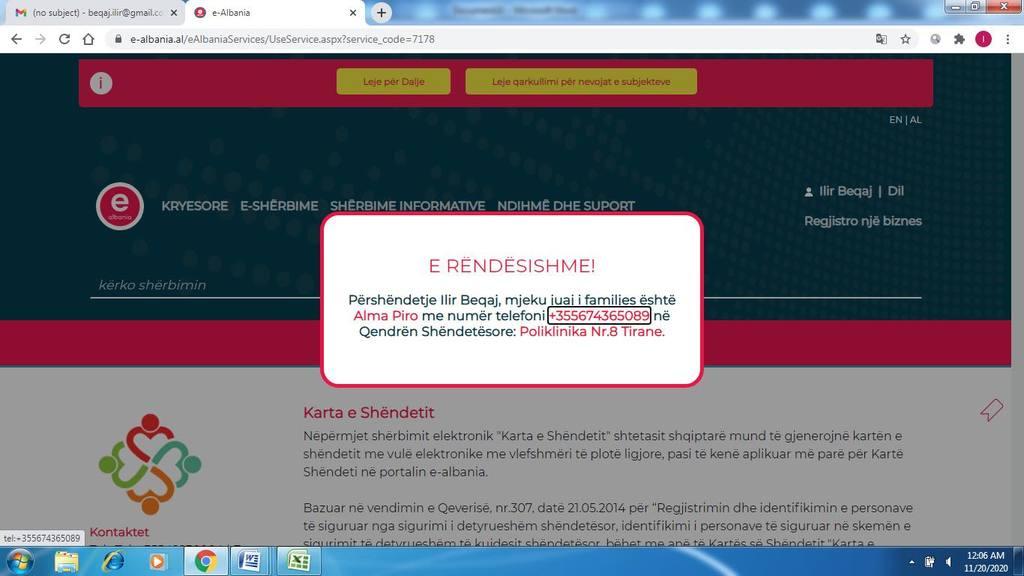 Deputeti socialist Ilir Beqaj bën të ditur se tashmë në e-albania krahas mjekut të familjes vendoset dhe numri i telefonit. Ai thotë se kanë qenë të shumtë ata që e kontaktuan duke kërkuar që të ishte i disponueshëm dhe numri i celularit, gjë e cila u realizua nga administratorët e e-albania brenda 24 orëve.