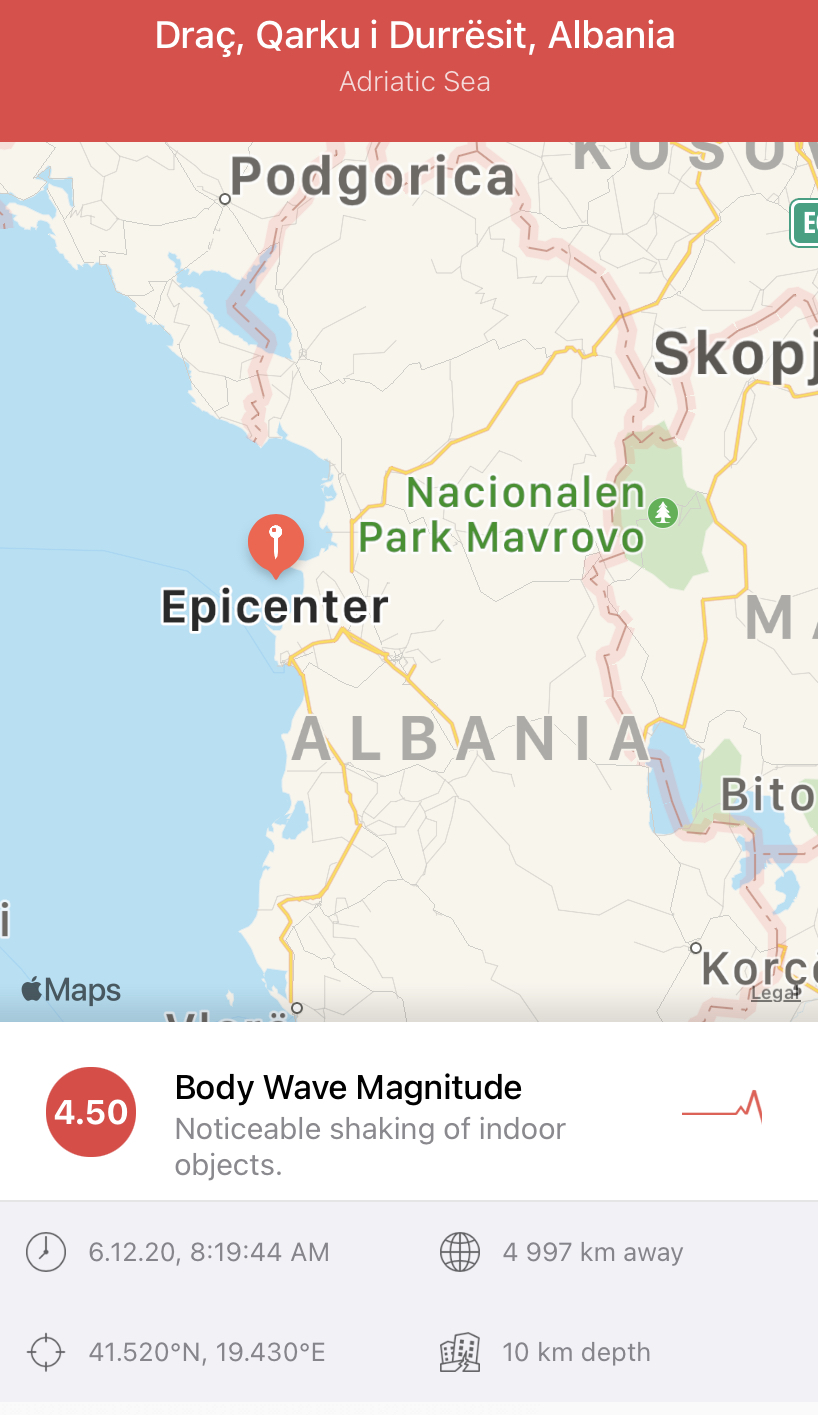 AktualitetTërmeti i fortë godet Shqipërinë, ja ku ishte epiqendra 06/12/20200314ShareFacebookX Tërmeti me shkallë 4,5 ballë shkundi pak minuta më parë Shqipërinë me epiqendër në Adriatik.Share this: Share on Facebook (Opens in new window) Facebook Like this:Like Loading...Related