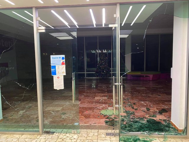 Taulant Balla teksa ka publikuar foto të xhamave të thyer të derës së selisë së Partisë Socialiste akuzon kryedemokratin Lulzim Basha, kryetaren e LSI-së Monika Kryemadhi dhe Presidentin e Republikës Ilir Meta për dhunën e protestuesve