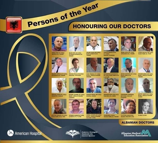 “KOHË KOVIDIANE…..HOMAZH për MANTELBARDHËT tanë të cilët humbën jetën e tyre në përballjen me sfidën e shekullit, Infeksionin e shkaktuar prej virusit jetëlëndues e jetëmarrës Sars-Cov2/Covid-19…..24 yje që do ti mungojnë vargut të yjeve të mjekëve Shqiptarë, të cilët punuan e sakrifikuan një jetë të tërë për të mbrojtur dhe shpëtuar jetët e të tjerëve….Jam i nderuar dhe shumë krenar që pjesën më të madhe të tyre i kisha njohur personalisht…JU LUTEM që për të nderuar edhe me shumë emrin dhe punën e tyre, respektoni gjithçka për të ulur mundësinë e infektimit nga Sars-Cov2/Covid-19, për të ulur numurin e të prekurve prej kësaj “flame mbarëbotërore”….M.D.H. = Maska/Mbulimi i hundës dhe i gojës + Distancimi fizik kur dhe ku është e mundëshme + Higjena personale dhe e mjediseve kolektive, janë trinomi i masave që për momentin mbeten më të efektshmet në këtë përballje me “armikun e padukshëm”….U prehshi në Altarin e Pavdeksisë!!!!”.