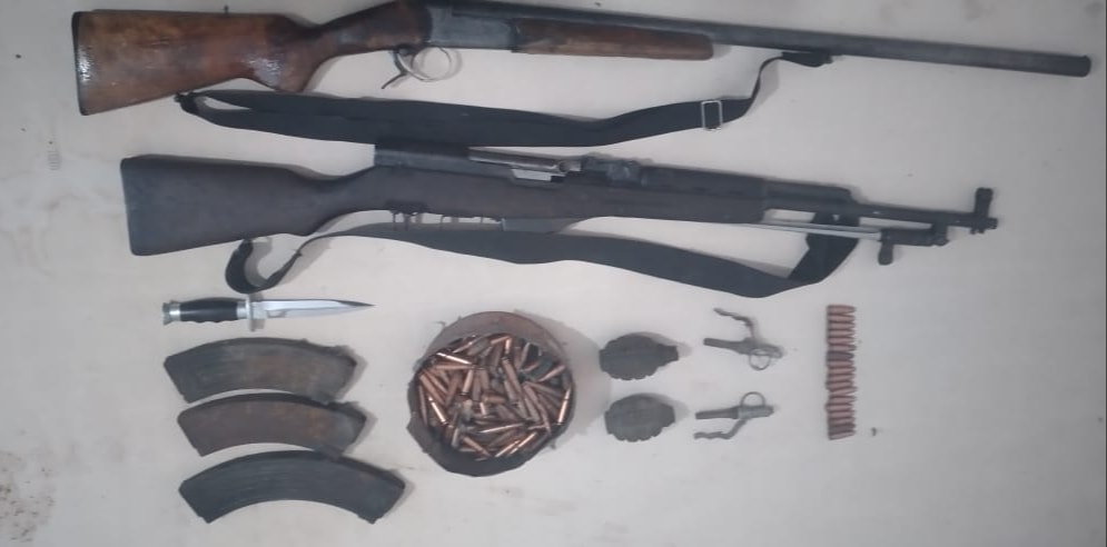 Sekuestrohen 1 armë zjarri pushkë, 1 armë gjahu, 2 granata, 2 ndezësa, armë e ftohtë si dhe municion luftarak.