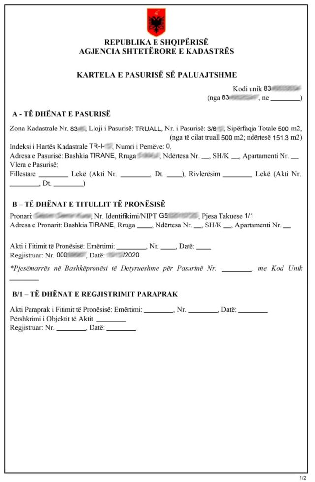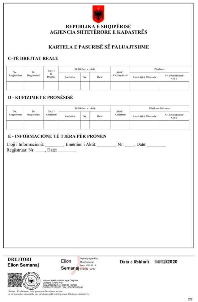 Kadastra shqiptare njofton se Këshilli i Ministrave ka vendosur ndryshimin e certifikatës së së regjistrimit të pronësisë. Në vendim thuhet se kjo është bërë për të paraqitur në mënyrë më të saktë dhe më të plotë të dhënat kadastrale referuar dokumentacionit tekniko-ligjor.