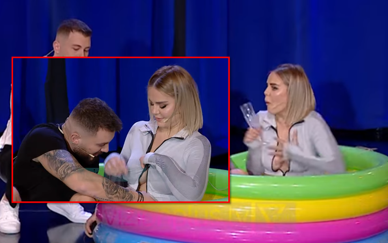 E ftuar në “Binjakët shoë”, Kthella u fut në një vaskë të mbushur me akull bashkë me Romeo Veshajn, por e tradhtoi bluzja që kishte veshur.