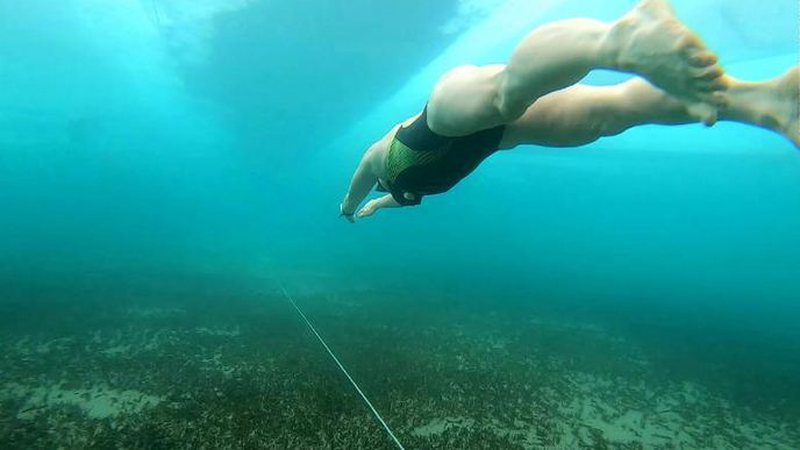 Ajo quhet, Yekaterina Nekrasova dhe mbajti frymën për një minutë dhe notoi 85 metra nën liqenin e ngrirë më 7 janar, që ishte dita e Krishtlindjeve ortodokse, dhe besohet se me tentativën e saj ka thyer rekordin botëror, cka pritet të verifikohet së shpejti.