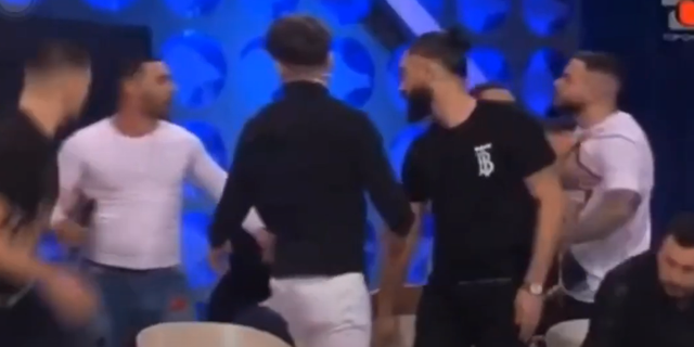 Të dy, në videon e publikuar në kanalin e Top-Channel shihet që ngrihen në këmbë për tu konfliktuar fizikisht por konkrentët e tjerë u qëndrojnë në mes.