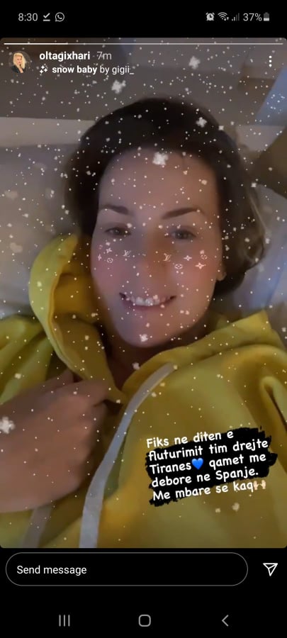 “Fiks në ditën e fluturimit tim drejt Tiranës. Qamet me dëborë në Spanjë. Më mbarë se kaq”, ka shkruar Olta përkrah një videoje të saj.