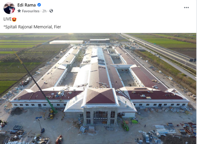 Kryeministri Edi Rama ka shpërndarë një foto nga ndërtimi i spitalit të ri të Fierit.