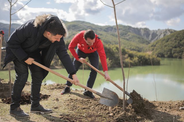 Moderatori dhe humoristi i njohur, së bashku me kryetarin e Bashkisë së Tiranës, Erion Veliaj dhe kandidatin për deputet të PS, Toni Gogu, e mbyllën me batuta humori sezonin e mbjelljeve në Liqenin e Fjollës në Pezë, ku vetë aktori kontribuoi në mbjelljen e 4 pemëve të reja.