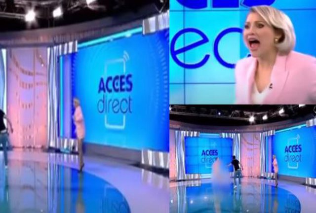 Duket si nëpër filma, por ka ndodhur me të vërtet në një emision të një televizioni në Rumani. Në pamjet e bëra virale në rrjete sociale, shihet një grua tërësisht e zhveshur teksa vrapon në mes të studios dhe tenton të godasë me tullë drejtuesen e emisionit, Mirela Vaida.