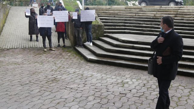 ” Gjyqtari Bahri Shyti i korruptuar, pasuri marramendese të padeklaruar, shtëpi, lokale, miniera”, shkruhet në pankartë.