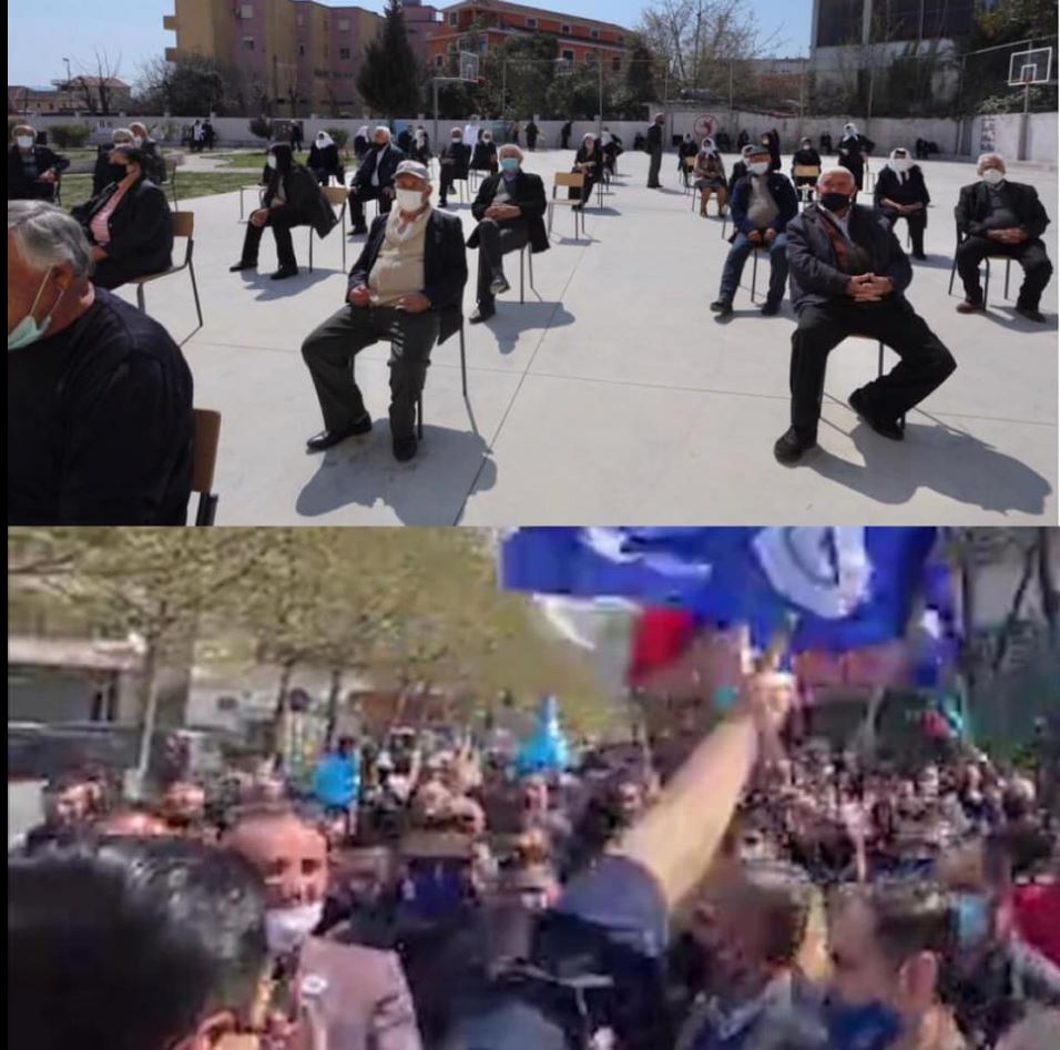 Kryeministri Edi Rama ka publikuar në “Facebook” një fotografi nga radhët që mbajnë qytetarët për të bërë vaksinën ndaj Covid dhe një tjetër nga mitingjet e Partisë Demokratike.