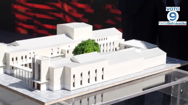 “Kemi një dhuratë për liderin e opozitës, Lulzim Basha. Maket i teatrit i prodhuar nga arkitektët. Përmasat janë marrë gjatë 3 viteve të protestës. Mbajeni në zyrë për të realizuar qëllimin e përbashkët. Rikthimi i Teatrit është edhe rikthim i vlerave qytetare dhe të kulturës. Të rikthehet. Me rikthimin e tij do jetë dhe rikthimi i vlerave dhe kulturës. Kultura do të jetë ambasadori më i mirë i Shqipërisë për anëtarësimin në BE. NE u sulmuam nga një kryeministër që vjen nga fusha e kulturës.