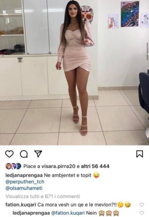 Nga ana tjetër, ish-konkurrenti i “Për’puthen”, Fation Kuqari, e ka vënë në siklet Ledjanën me komentin që i ka lënë në fotos e saj.