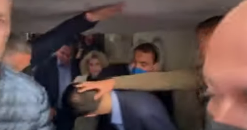 Gjersa po zbrisnin poshtë pallatit njëri nga qytetarët iv ë dorën sipër kokës që ta mbronte të mos goditej me murin e ulët. Por pasi ai bëri këtë veprim, njëri nga badigardët i është kundërvënë atij.