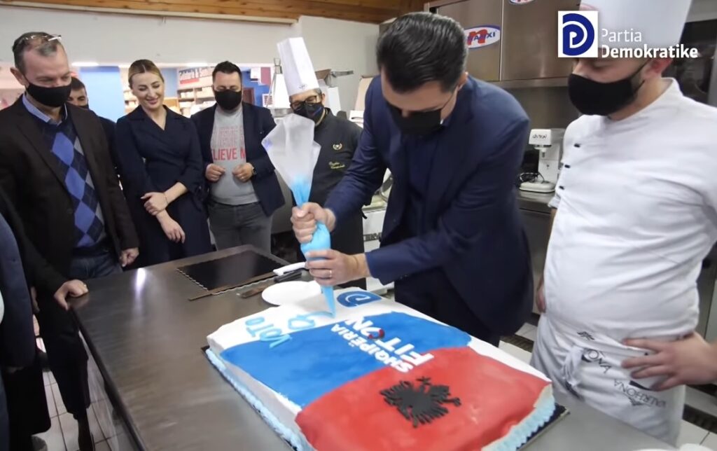 Më pas studentët kishin përgatitur për kreun e PD-së një tortë me siglën e demokratëve ku i kërkuan të vendoste vetë numrin 9, numri që përkon me PD-në në fletën e votimit.