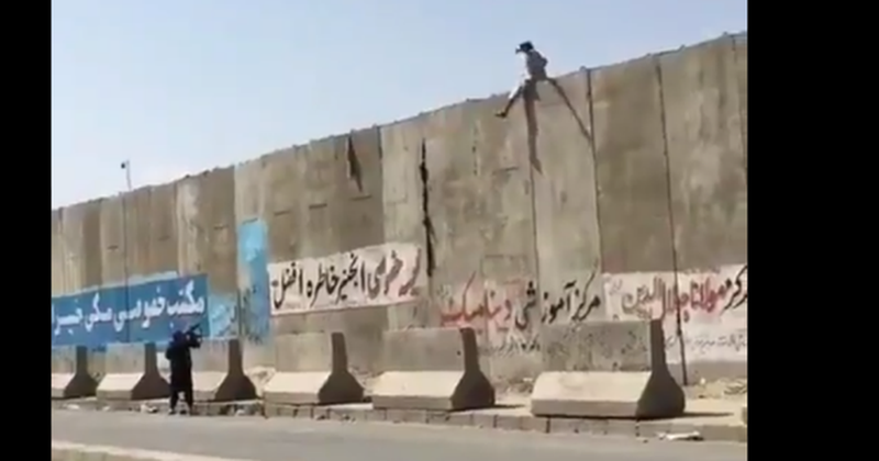 “Një luftëtar taleban po qëllon një burrë që përpiqet të hyjë në Aeroportin e Kabulit. #Afganistan”, ka shkruar ai.