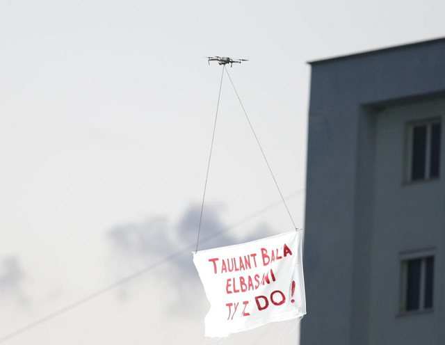 Gjatë pjesës së parë, mbi fushën e blertë është ngritur një dron me një banderolë ku shkruhej: “Taluant Balla, Elbasani ty të do”.