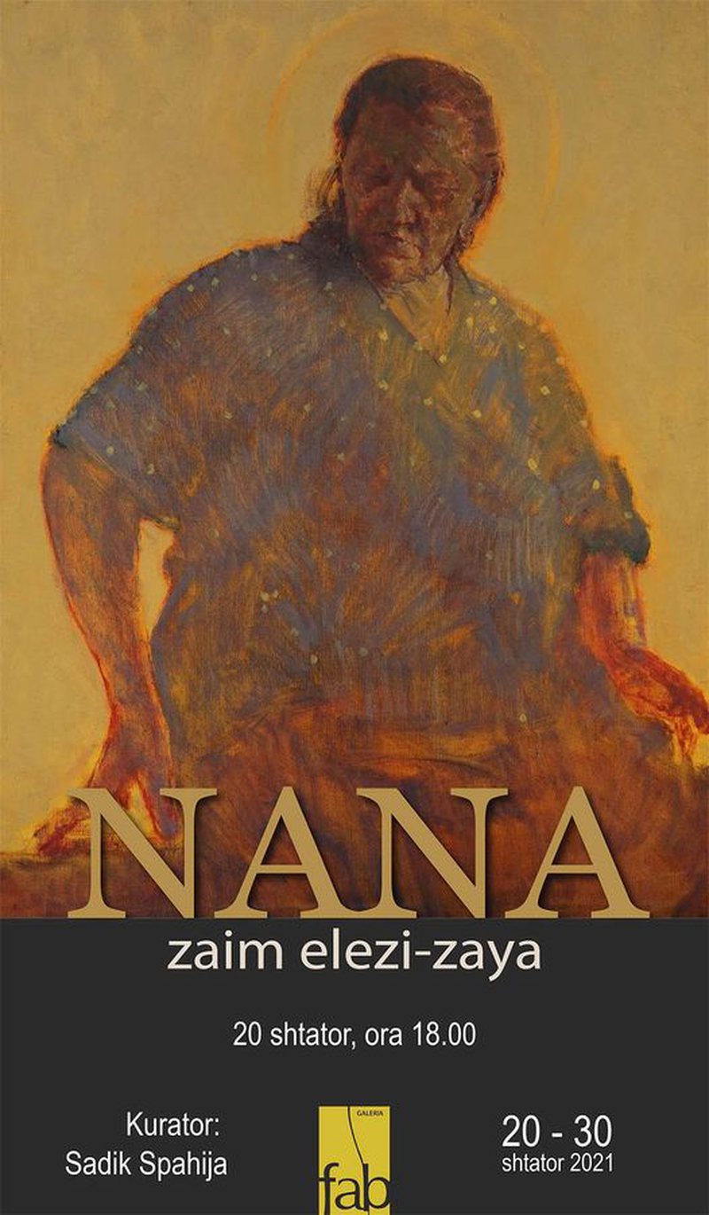 “Nana” titullohet ekspozita me punë të piktorit Zaim Elezi, që hapet sot në galerinë “FAB”, Universiteti i Arteve. Ekspozita personale e piktorit të mirënjohur është e kuruar nga prof. Sadik Spahija. Piktori Elezi sjell në ekspozitë një grup punimesh, që fillojnë nga vitet ’80-të e deri më sot, vepra që prezantohen për herë të parë. Prof. Spahija në tekstin e tij kuratorial shprehet se tema e amësisë ka prezantuar ndjenjën e dashurisë së thellë, lidhjen e pazgjidhshme dhe hyjnore që lidh nënën me fëmijën, duke mbetur një nga temat më të bukura dhe më tërheqëse në historinë e artit. Spahija thotë se Zaim Elezi prezanton në ekspozitë punë që nga vitet ’80 e deri më sot, kohë që rrok dy sistemet, shumë ndryshime, por që në këtë ekspozitë ruan vetëm një dimension, dashurinë për nënën, të parë në 360 gradë. “Ajo çka dallojmë, së pari, që bën veçantinë e këtij autori në raport me temën, është se ai nuk ka reshtur së pikturuari nënën, duke mbetur në thellësi tema e jetës në krijimtarinë e tij. I gjithë korpusi i këtyre veprave nuk është ekspozuar asnjëherë. Ai i ka pikturuar ato për kënaqësinë e tij. Sado narciziste të duket kjo, e parë në kontekstin e kohës ku shtrihen shumica e veprave, përbën një sfidë përballë temave dhe kanoneve të imponuara të realizmit socialist. Tema e nënës, ndjenjat nënë-fëmijë, si ndjenjat më natyrale, mund të vinin në plan të dytë ose vinin në dyshim tematikën e asaj kohe”, shprehet prof. Spahija në tekstin e tij. Kuratori vijon se autori nuk shfaqet asnjëherë me praninë e tij fizike, (përveç një rasti të sjellë enkas), duke e lënë personazhin në përditshmërinë e saj.