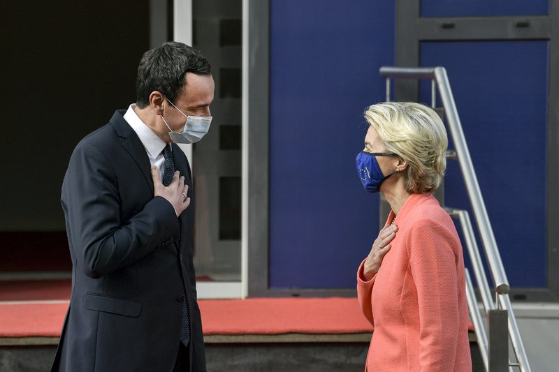 Presidentja e Komisionit Europian, Ursula von der Leyen ditën e djeshme ka vijuar turin e saj të vizitave në Ballkanin Perëndimor, me vizitën në Kosovë. Ajo zhvilloi takime me presidenten e vendit, Vjosa Osmani dhe kryeministrin Albin Kurti. Në një konferencë të përbashkët pas takimit me zonjën von der Leyen, kryeministri Kurti bëri me dije se tema qendrore e takimit ka qenë ekonomia, por është biseduar edhe në lidhje me integrimin evropian të vendit. Në fjalën e tij, zoti Kurti foli edhe mbi situatën në veri të Kosovës dhe marrëdhëniet e tensionuara me Serbinë. Ai siguroi se Kosova ka qenë gjithmonë e gatshme për zgjidhje të situatës, por se nga pala serbe nuk është vërejtur e njëjta gadishmëri. “Gatishmërinë e kemi treguar edhe të hënën kur erdhi në takim gjeneral majorin e KFOR-it, Franco Federici i cili dha një propozim racional që nënkuptonte heqjen e barrikadave për liri të lëvizjes dhe zëvendësimin e Njësive Speciale nga pjesëtarët e KFOR-it deri në një qetësim të situatës. Aty do të vazhdonin të qëndronin policia jonë kufitare e cila do të vazhdonte me zbatimin e marrëveshjes së reciprocitetit”, ka deklaruar Kurti. Ai ka bërë me dije se një propozim i tillë është refuzuar nga Serbia. “Në parim ne e kemi pranuar këtë, dhe sa i përket orarit të tërheqjes së Njësive Speciale kemi ngelur të bisedojmë me Policinë e Kosovës. Ne paraprakisht jemi konsultuar edhe PK-në, pasi që vendimet që ne i marrim nuk janë vetëm politike. Ne kemi qenë dakord, mirëpo Serbia e ka refuzuar këtë. Pra Serbia javën e kaluar ka refuzuar dialogun në Bruksel, këtë javë e ka refuzuar marrëveshjen e propozuar nga KFOR-i”, shtoi Kurti. Kryeministri i Kosovës deklaroi se Serbia ka reaguar me forcë pas masës së reciprocitetit me targa. “Në takim e njoftova zonjën Von der Leyen për gjendjen në vendkalimet kufitare, Bërnjak dhe Jarinë, se ne nuk kemi marrë vendim të ri, por vetëm po e zbatojmë një dakordim të mëparshëm. Fatkeqësisht, Serbia reagoi me forcë, duke përfshirë edhe trupa, tanke, automjete të blinduara e luftarake. Përveç këtyre ka angazhuar aeroplanë ushtarakë të prodhimit rus”, tha Kurti. Gjatë konferencës, Kurti akuzoi presidentin serb Aleksandar Vuçiç se ishte nxitës i sulmeve në Zubin Potok dhe Jarinë. “Sulmet erdhën pas deklaratave luftënxitëse e plot urrejtje të presidentit të Serbisë e pas demostrimeve ushtarake në kufi me Kosovën”, tha ai. Kryeministri akuzoi Serbinë më tej se nga një anë merr ndihma dhe donacione nga Bashkimi Europian, dhe nga ana tjetër militarizohet nga Rusia dhe Kina. Nga ana tjetër, kryetarja e KE, Ursula von der Leyer në fjalën e saj për mediat, theksoi se është jetike që të ndodh normalizimi i raporteve Kosovë-Serbi. “Është më rëndësi që të ecim përpara në rrugën evropiane dhe ka rëndësi jetike që të bëhet normalizimi i raporteve Kosovë-Serbi. Jam shumë e shqetësuar me krizën aktuale. Është me rëndësi që të shtensinohet situata dhe të kthehemi në tryezën e negociatave për të gjetur zgjidhje të qëndrueshme, dhe e vetmja mënyrë për këtë është përmes dialogut të lehtësuar nga BE, që është platforma e vetme për zgjidhjen e krizës aktuale”, tha ajo.