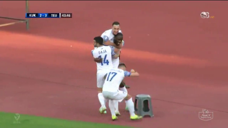 I pari sulmoi Kukësi që në minutën e dytë, me anë të Basas, por portieri Qirko evitoi golin në portën durrsake. Në minutën e 7-të vjen goli i parë i ndeshjes, i shënuar nga Albano Aleksi. Ai goditi fluturimthi topin e mbetur në zonë pas harkimit nga këndi dhe sfera përfundon në rrjetë. Më pas loja merr flakë dhe të dyja skuadrat luajnë hapur, duke dhënë spektakël. Reagon menjëherë Kukësi që barazon shifrat me brazilianin Vitor Feijao, që përfitoi nga një pritje jo e mirë e Qirkos pas goditjes së Basa. Një aksion model i Kukësit me Feijaon që gjeti golin e tij të parë në kampionat me verilindorët. Minutat në vijim janë shumë të mira për Kukësin, që regjistron shumë aksione sulmuese e i afrohet shumë golit. Dhe përpjekjet e skuadrës verilindore japin efekt. Në minutën e 27-të është rasti i Kukësit dhe gjyqtari Xhaja, pasi këshillohet me VAR, jep penallti, për prekje të topit me dorë brenda zonës nga Xhekson. Gjelbërim Taipi tregohet i saktë, edhe pse Pano Qirko arrin t’i kuptojë krahun. Por loja bëhet akoma më interesante në vijim, pasi në minutën e 32-të, është sulmuesi Sebino Plaku që barazon shifrat 2-2, pasi u vu përballë tek për tek me portierin Tafa, duke e mposhtur atë. Por emocionet nuk do të ndaleshin aty. Në fundin e pjesës së parë, pikërisht në minutën e 44-t, Teuta e përmbys Kukësin, duke shënuar golin e tretë me anë të francezit Kubemba. Ishte një lëvizje e bukur e Xhekson që nxori para portierit Emiliano Vilën, goditja e tij të cilit u prit nga Tafas, por Kubemba nga dy hapa e kishte të thjeshtë ta dërgonte topin në rrjetë, për ta mbyllur pjesën e parë me shifrat 3-2 për Teutën e Durrësit. Në fakt, ishte me fat Teuta në sekondat e fundit të pjesës së parë, pasi një gjuajtje nga mesi i fushës për pak e shtangu portierin Qirko, por shifrat nuk ndryshuan.