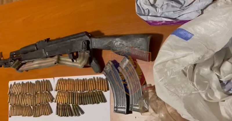 Gjatë kontrollit të ushtruar në banesën e këtij shtetasi, shërbimet e Policisë kanë gjetur dhe sekuestruar 1 armë zjarri automatik me 2 krehëra dhe 132 fishekë luftarak.