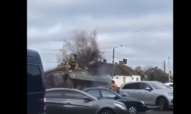 Nga disa video-incizime në rrjetet sociale shihen tanket e ushtrisë ruse duke shkelur mbi vetura dhe njerëzit në rrugë të frikësuar dhe në panik.