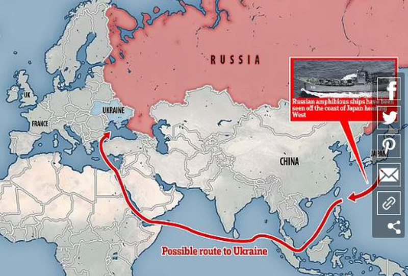 Një foto e publikuar nga Ministria e Mbrojtjes e Japonisë në agjencinë e lajmeve Kyodo tregonte një luftanije ruse amfibe që transportonte kamionë ushtarakë. Një zëdhënës i qeverisë japonez tha: “Ne nuk e dimë se ku po shkojnë, por mendohet se do ikin drejt Ukrainës”. Aleatët e NATO-s kanë furnizuar me 20,000 armë antitank dhe armë të tjera Ukrainën, e cila prej 24 shkurtit po përballet me agresionin e forcave ushtarake ruse.