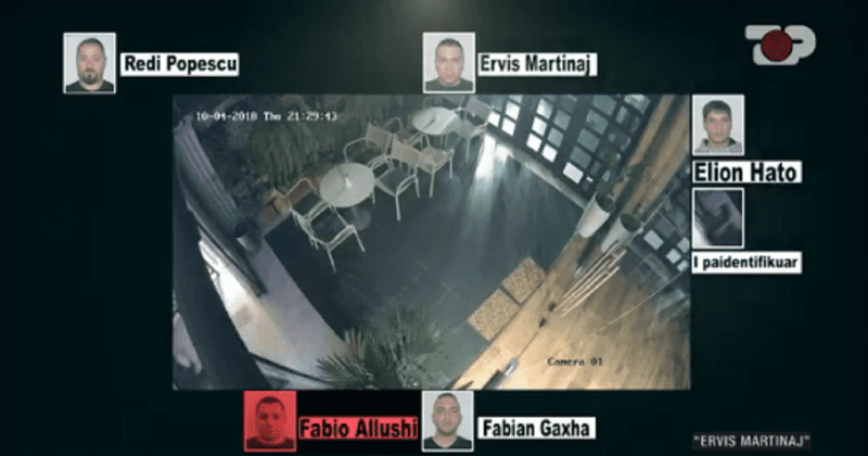 Momenti i mbërritjes së Ervis Martinajt në lokal është në orën 21:26, teksa shoqërohej nga Eljon Hato që mbeti i plagosur dhe një person i paidentifikuar. Dy minuta më pas futet edhe viktima Fabian Gaxha.