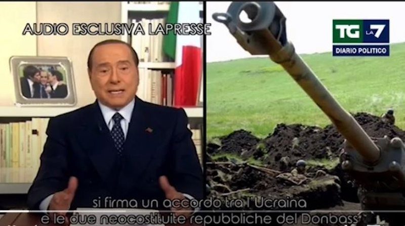 Kjo pjesë e fjalimit kujton fjalinë e shqiptuar në fund të fushatës elektorale nga Berlusconi: Putinit iu desh vetëm të zëvendësonte qeverinë e Zelenskyy-t me një qeveri me njerëz të ndershëm”, fjali të cilën më vonë u mundua ta justifikonte me “I referohesha fjalëve të të tjerëve”. Në të njëjtin skedar audio, Berlusconi sulmon liderët e Evropës dhe SHBA-së.