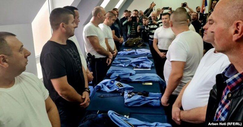 Janë siguruar pamje nga momenti teksa policët serbë, anëtarë të partisë më të madhe të serbëve në Kosovë, zhveshin uniformat e tyre si akt i parë i largimit nga institucionet dhe lënë detyrën.