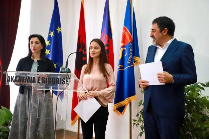114 Oficerë të Sigurisë nëpër shkolla janë certifikuar dje nga Akademia e Sigurisë pas përfundimit të trajnimit përkatës në këtë institucion arsimor. Dy ministrat, Bledi Çuçi dhe Evis Kushi morën pjesë në ceremoninë e organizuar me këtë rast. Ministri i Brendshëm tha se shtimi i oficerëve të sigurisë nëpër shkollat publike të vendit është pjesë e vizionit tonë për ta shndërruar Policinë e Shtetit në një bërthamë komunitare. “Ne besojmë se çështjet e sigurisë në një vend nuk janë vetëm probleme të organeve të policisë, por janë probleme të të gjithë shoqërisë. Në këtë kuadër një nga nismat tona ka qenë përfshirja e punonjësve të sigurisë nëpër shkollat tona edhe si një nga veprimet konkrete për të realizuar atë që ne themi “policimi në komunitet”. Nga një pilotim që bëmë nga gjimnazet qendrore të Tiranës sot po flasim për një shtrirje të kësaj prezence në të gjithë Shqipërinë, jo vetëm në gjimnaze, por edhe në shkolla 9-vjeçare”, u shpreh Çuçi. Me certifikimin e djeshëm numri total i oficerëve të sigurisë në shkollat e vendit shkon në 220. “Këto struktura kanë sjellë diçka, kanë rritur sigurinë në shkollat tona. Pa diskutim që këto struktura kanë qenë elementi më i rëndësishëm për të pasur ambiente të shkollave më të sigurta ndaj atyre fenomeneve që ju i dini, si shitja e lëndëve narkotike, konflikteve, bulizmit dhe elemente të tjerë të paligjshmërisë. Ka një rëndësi të jashtëzakonshme puna që ju do të bëni dhe bëjnë kolegët tuaj nëpër shkolla. Duhet ta kuptoni si një mision sepse është një mision dhe një detyrë që ju ngarkohet ju për të garantuar një shoqëri të së ardhmes më të sigurt dhe më të mirë”, tha ministri Çuçi.