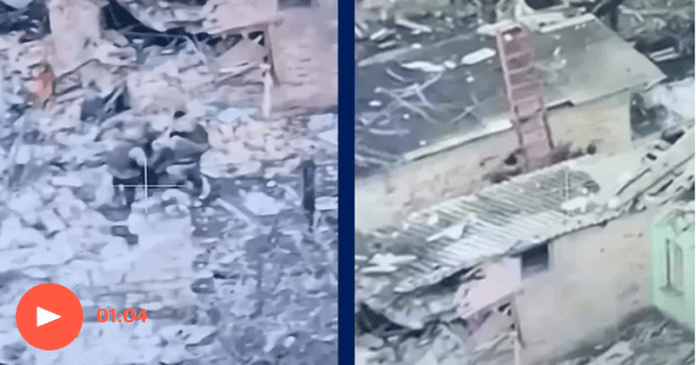 Një dron ukrainas kapi incidentin pranë qytetit lindor të Bakhmut, ku luftimet intensive kanë vazhduar për muaj të tërë. Katër ushtarë nga grupi mercenar Wagner i Rusisë e mbajnë kolegun e tyre nëpër një peizazh shtëpish të shkatërruara, duke mbajtur krahët dhe këmbët e tij.